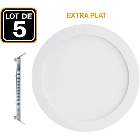 Lot de 5 Spots Encastrable LED Downlight Panel Extra-Plat 18W Blanc Neutre 4200-4500K, plafonnier Led de forme ronde adaptĂ©e pour bureau, commerce, cabinet, magasin,habitation ect…Basse consommation d’Ă©nergie. Les produits LED consomment une puissance qui est environ 10 fois moindre que celle consommĂ©e par les spots ordinaires. Longue vie, produit Ă©cologique.