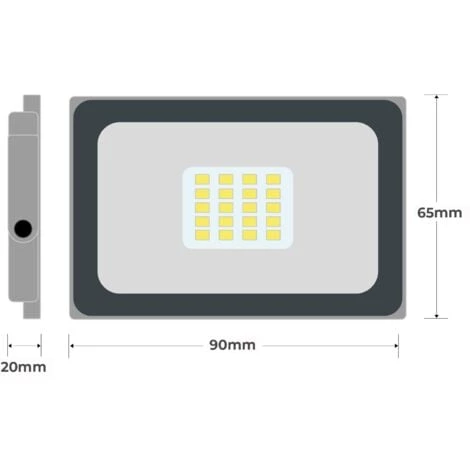 Watts: 10W Reference: FL5002 Lumen: 850Lm Durée de vie: 50.000h Angle: 120° 10W = 80w Kelvin: 4000k Taille: 90x65x20mm Classe IP: 65 Poid: 0.5 Kg