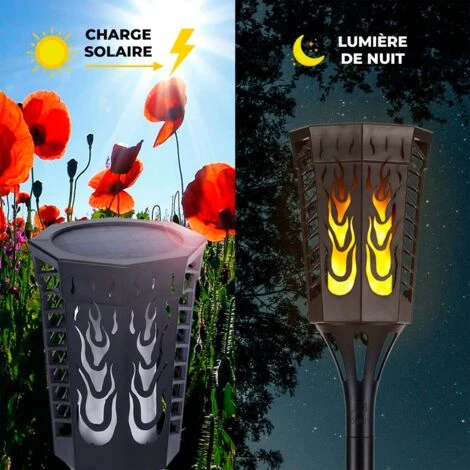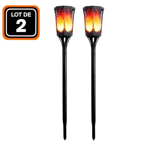 LOT DE 2 FLAMES SOLAIRE DÉTECTEUR CREPUSCULAIRE 96 PCS LED