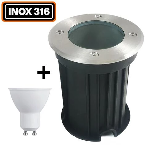 Spot Encastrable de Sol Rond Inox 316 Exterieur IP65 + Ampoule GU10 5W Blanc Neutre 4500K