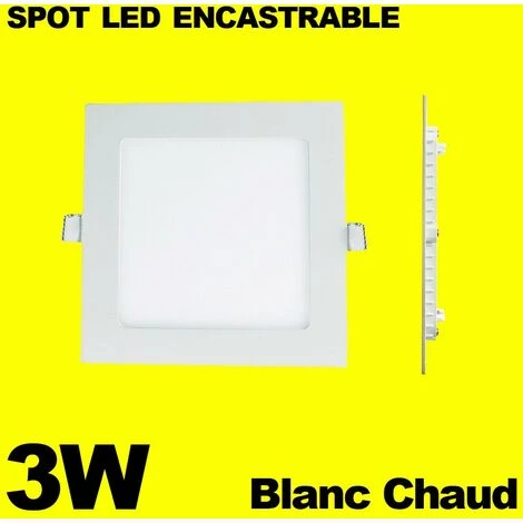 Spot Encastrable LED Carre Downlight Panel Extra-Plat 3W Blanc Chau